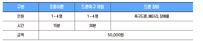 드론을 통한 레저활동으로 드론축구와 드론레이싱 교육과 체험을 즐길 수 있습니다.