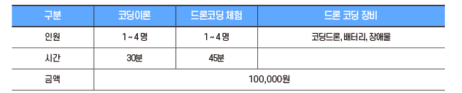 코딩을 통한 드론의 작동 및 체험을 경험할 수 있습니다.